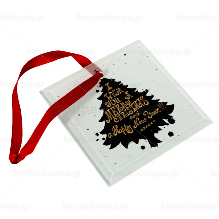 Tree, i wish you a merry christmas and a Happy New Year!!! xoxoxo, Στολίδι Χριστουγεννιάτικο στολίδι γυάλινο τετράγωνο 9x9cm