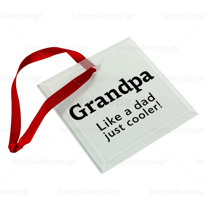 Grandpa, like a dad, just cooler, Στολίδι Χριστουγεννιάτικο στολίδι γυάλινο τετράγωνο 9x9cm