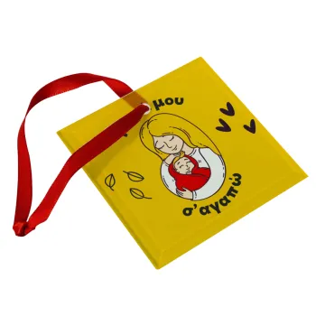 Μανούλα σ'αγαπώ αγκαλιά!, Στολίδι Χριστουγεννιάτικο στολίδι γυάλινο τετράγωνο 9x9cm