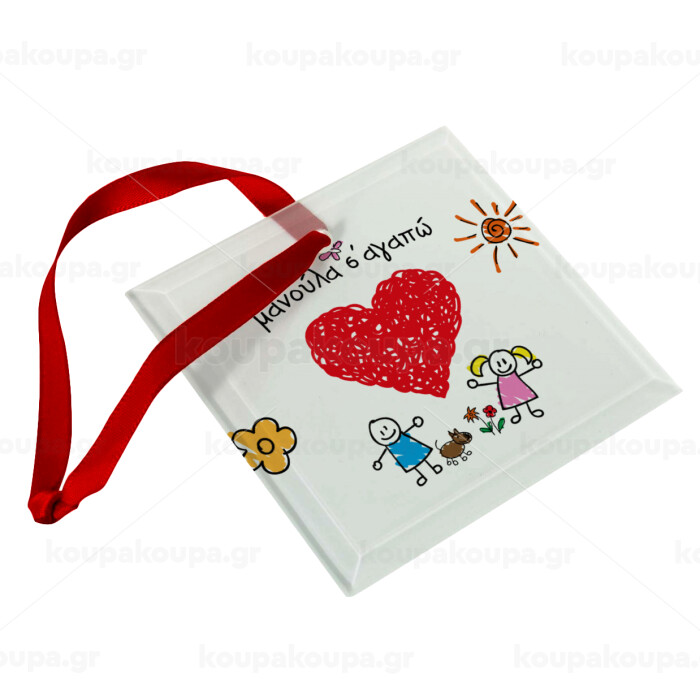 Μανούλα σ'αγαπώ!, Στολίδι Χριστουγεννιάτικο στολίδι γυάλινο τετράγωνο 9x9cm