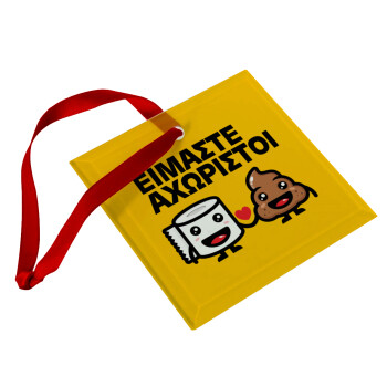 Είμαστε αχώριστοι, Στολίδι Χριστουγεννιάτικο στολίδι γυάλινο τετράγωνο 9x9cm