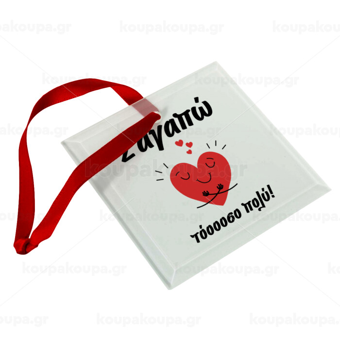 Σ΄αγαπώ τόοοοσο πολύ καρδιά, Στολίδι Χριστουγεννιάτικο στολίδι γυάλινο τετράγωνο 9x9cm
