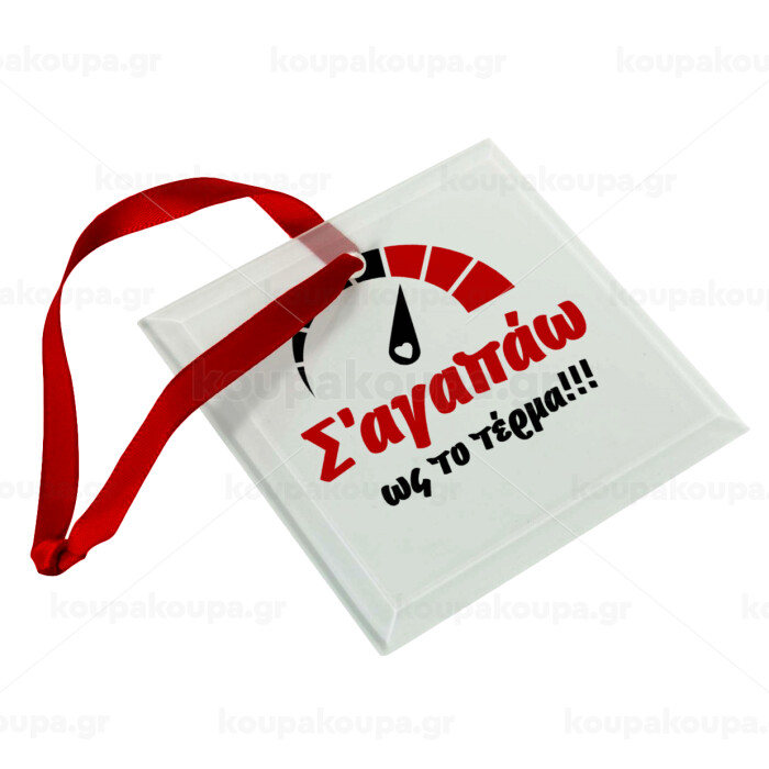 Σ΄ αγαπώ ως το τέρμα!!!, Στολίδι Χριστουγεννιάτικο στολίδι γυάλινο τετράγωνο 9x9cm