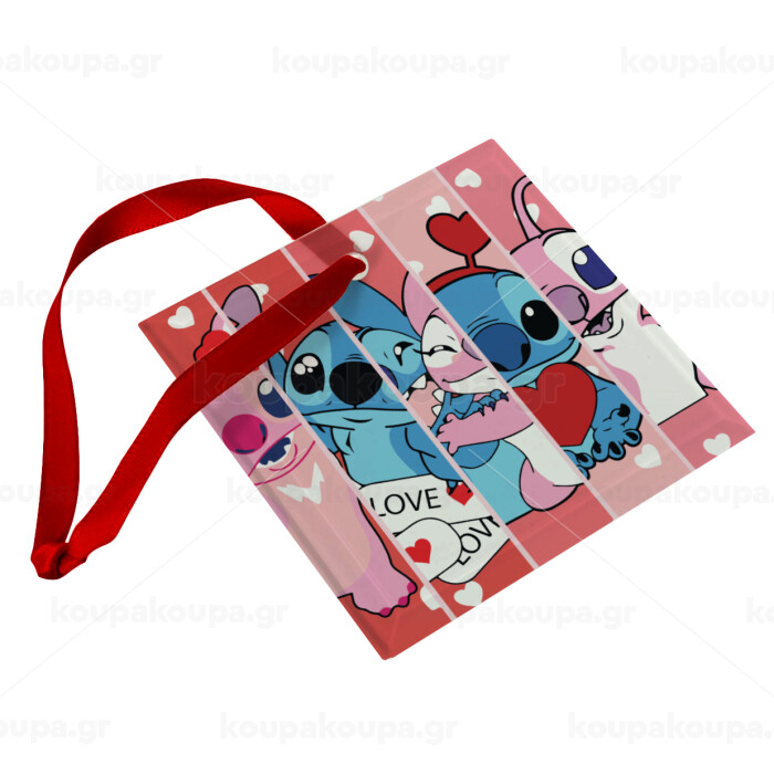 Lilo & Stitch Love, Στολίδι Χριστουγεννιάτικο στολίδι γυάλινο τετράγωνο 9x9cm