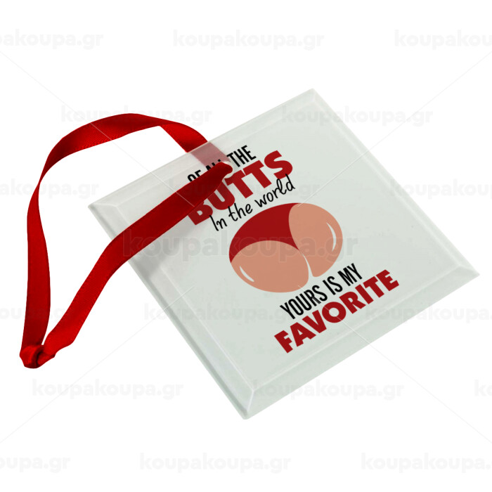 Of all the Butts in the world, your's is my favorite, Στολίδι Χριστουγεννιάτικο στολίδι γυάλινο τετράγωνο 9x9cm