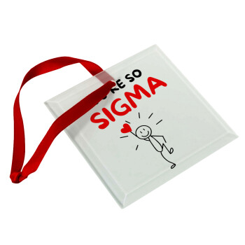 Sigma Valentine's Day , Στολίδι Χριστουγεννιάτικο στολίδι γυάλινο τετράγωνο 9x9cm