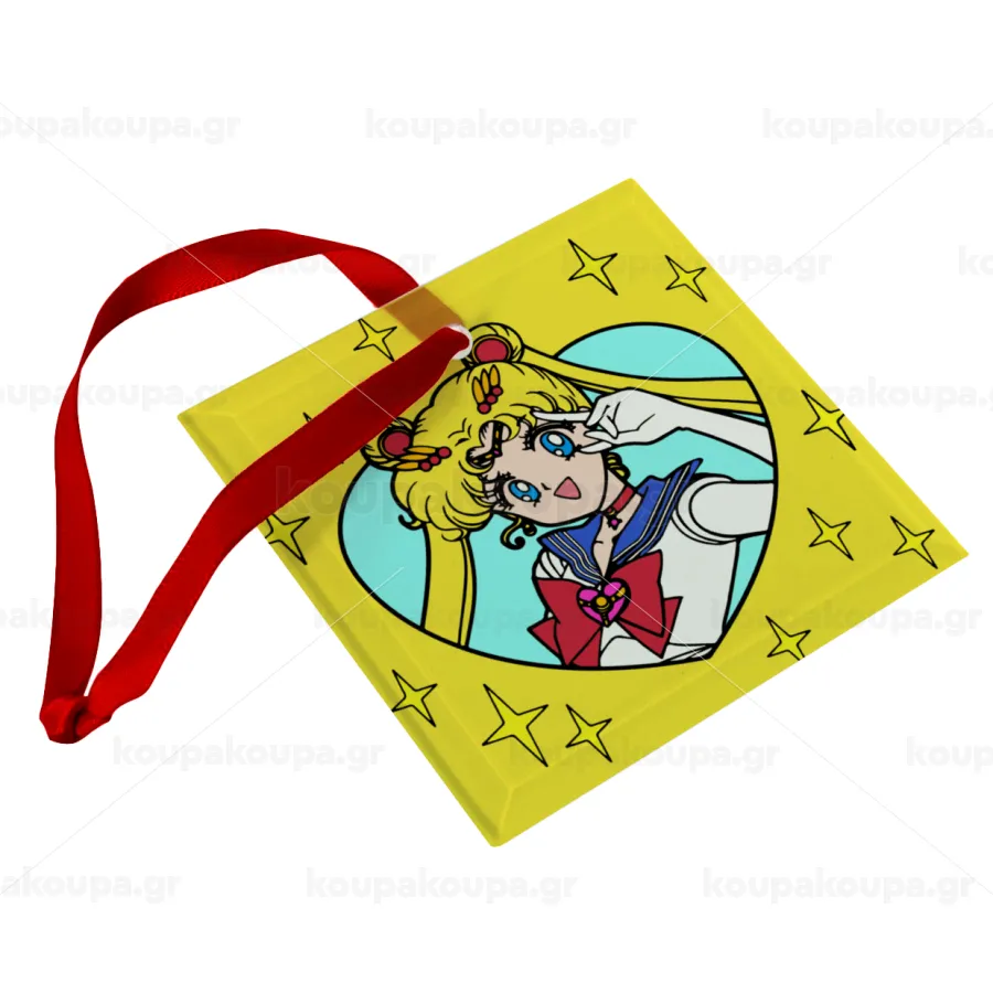 Sailor Moon star, Στολίδι Χριστουγεννιάτικο στολίδι γυάλινο τετράγωνο 9x9cm