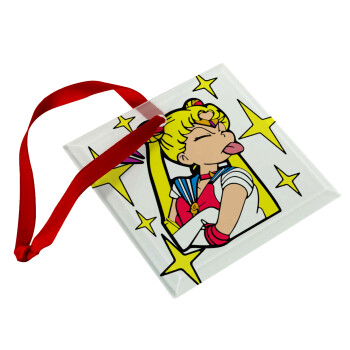 Sailor Moon star, Στολίδι Χριστουγεννιάτικο στολίδι γυάλινο τετράγωνο 9x9cm