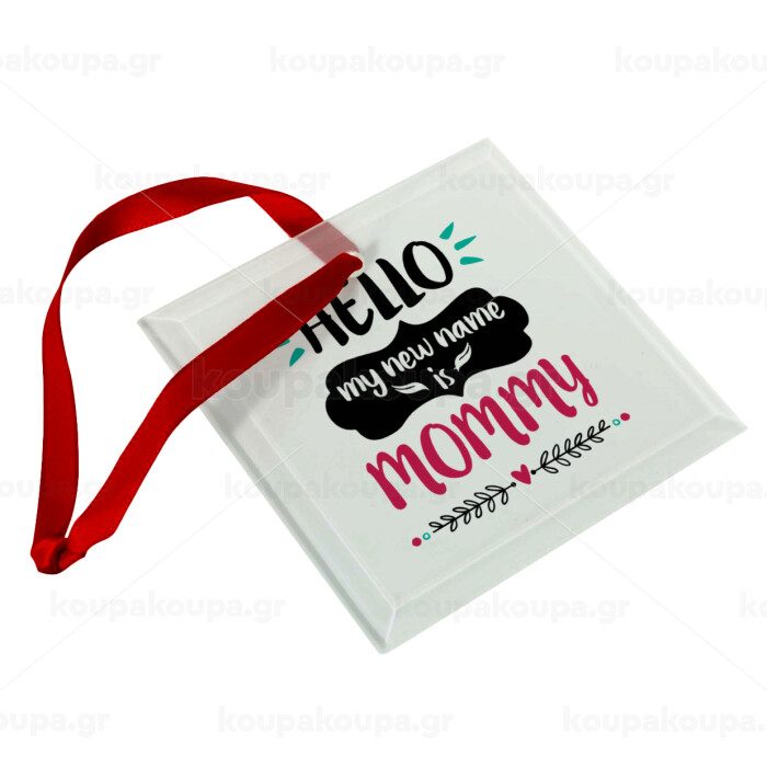Hello, my new name is Mommy, Στολίδι Χριστουγεννιάτικο στολίδι γυάλινο τετράγωνο 9x9cm