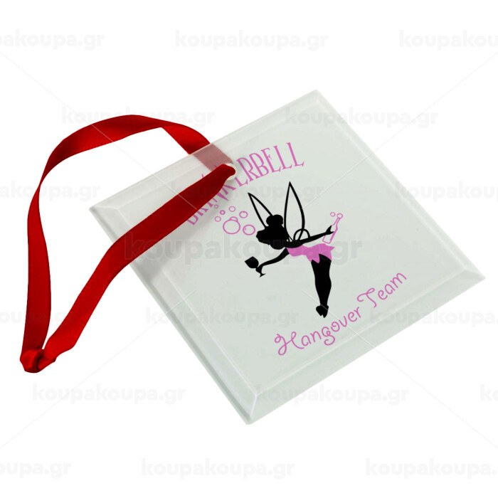 Drinkerbell bachellor, Στολίδι Χριστουγεννιάτικο στολίδι γυάλινο τετράγωνο 9x9cm