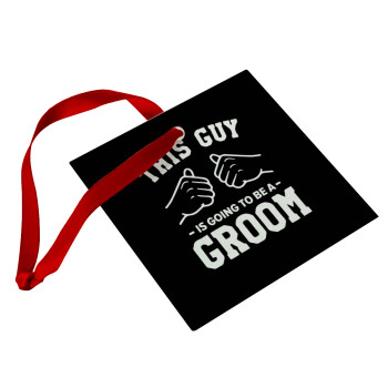 This Guy is going to be a GROOM, Στολίδι Χριστουγεννιάτικο στολίδι γυάλινο τετράγωνο 9x9cm