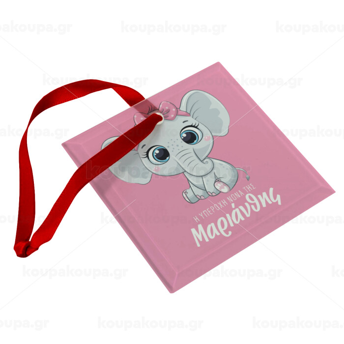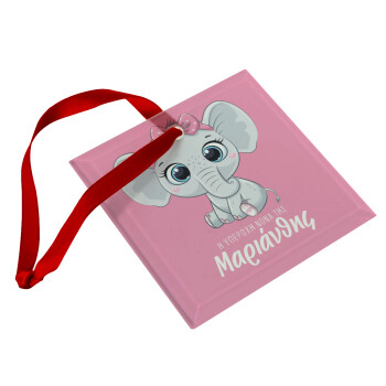 Η νονά μου, ελεφαντάκι ροζ, Στολίδι Χριστουγεννιάτικο στολίδι γυάλινο τετράγωνο 9x9cm