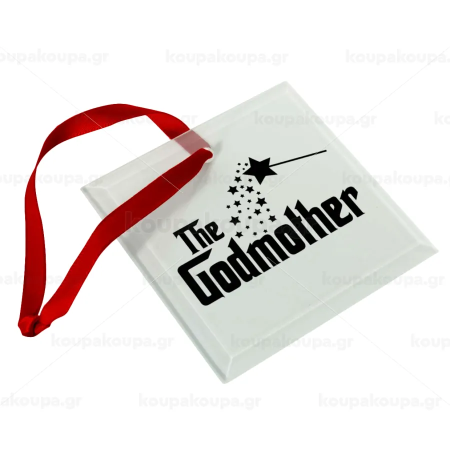 Fairy GodMother, Στολίδι Χριστουγεννιάτικο στολίδι γυάλινο τετράγωνο 9x9cm