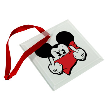 Mickey fuck off, Στολίδι Χριστουγεννιάτικο στολίδι γυάλινο τετράγωνο 9x9cm