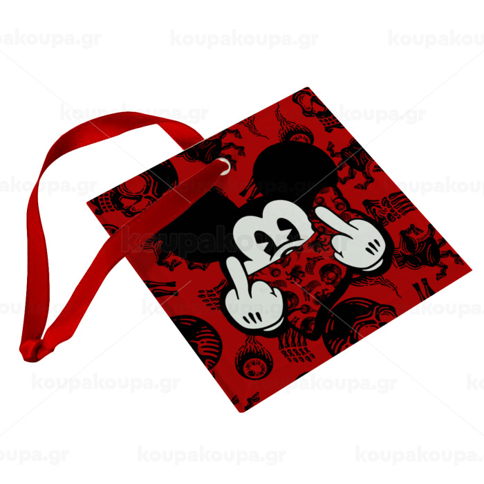 Mickey fuck off, Στολίδι Χριστουγεννιάτικο στολίδι γυάλινο τετράγωνο 9x9cm