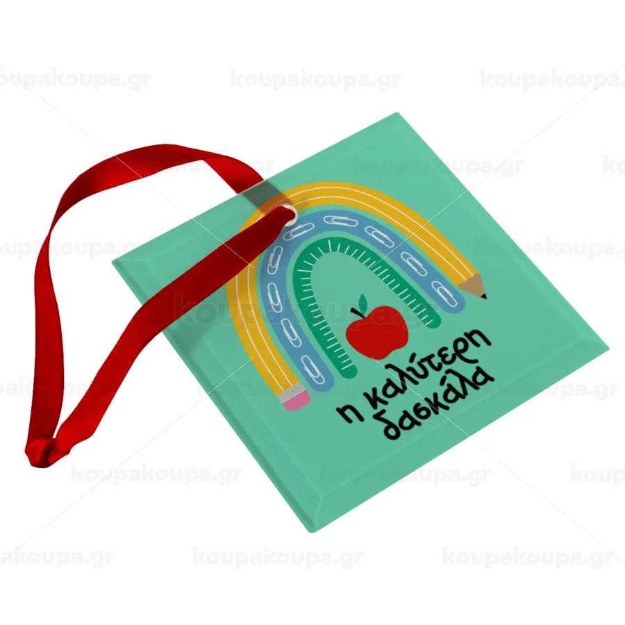 Teacher, Στολίδι Χριστουγεννιάτικο στολίδι γυάλινο τετράγωνο 9x9cm