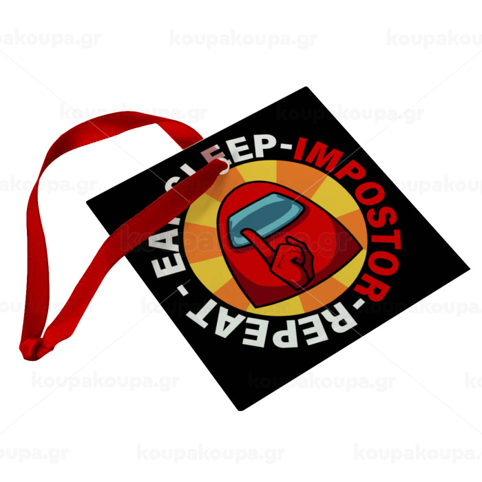Among US Eat Sleep Repeat Impostor, Στολίδι Χριστουγεννιάτικο στολίδι γυάλινο τετράγωνο 9x9cm