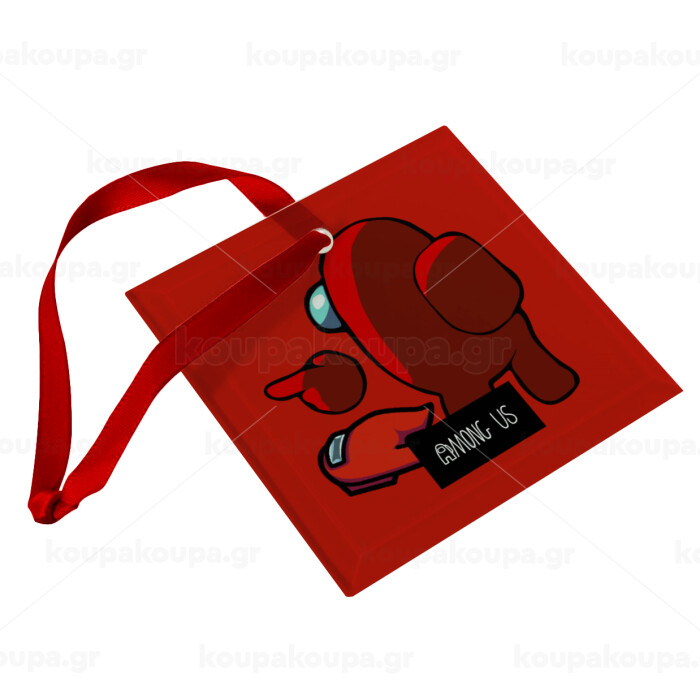 Among US i am impostor..., Στολίδι Χριστουγεννιάτικο στολίδι γυάλινο τετράγωνο 9x9cm