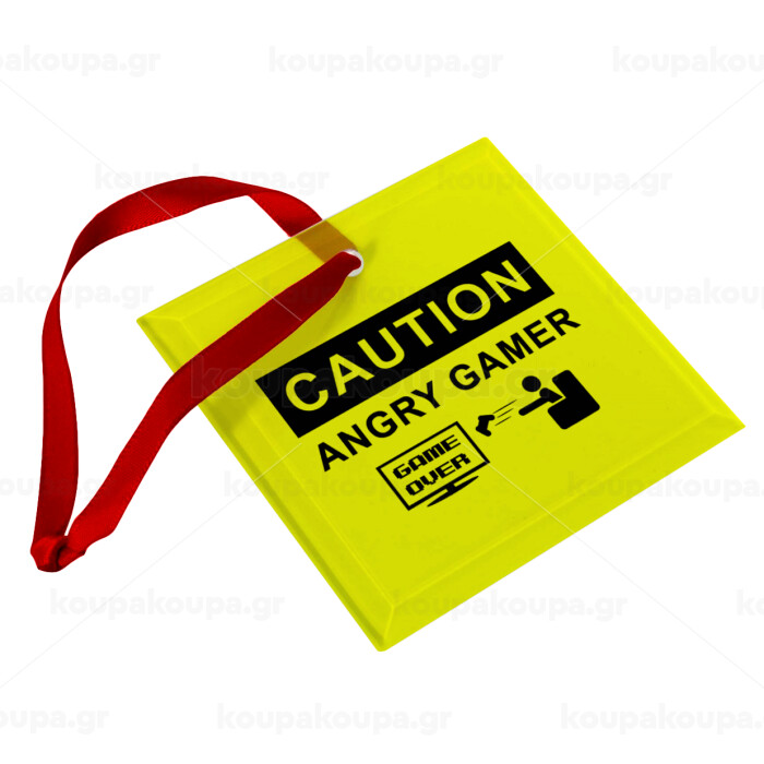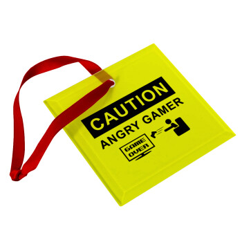 Caution, angry gamer!, Στολίδι Χριστουγεννιάτικο στολίδι γυάλινο τετράγωνο 9x9cm
