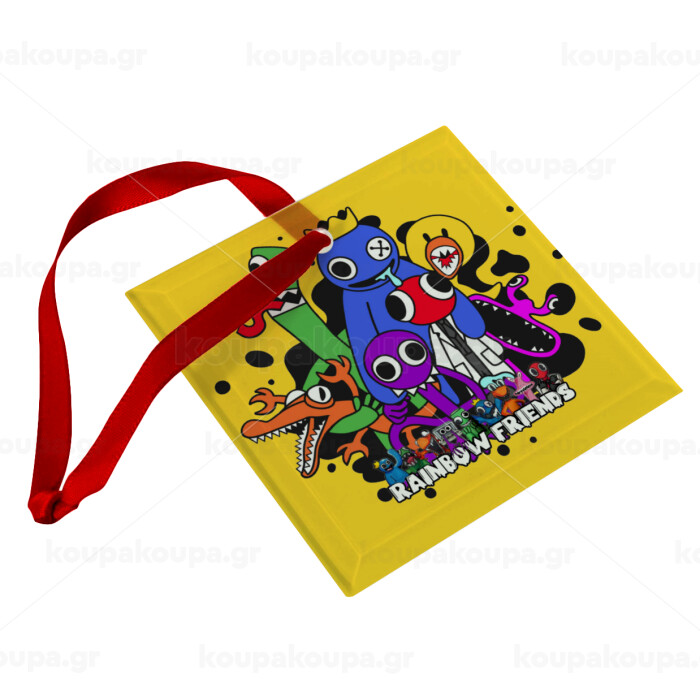 Rainbow friends, Στολίδι Χριστουγεννιάτικο στολίδι γυάλινο τετράγωνο 9x9cm