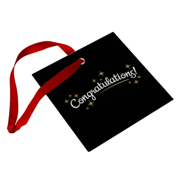 Congratulations, Στολίδι Χριστουγεννιάτικο στολίδι γυάλινο τετράγωνο 9x9cm