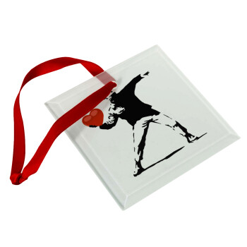 Banksy (The heart thrower), Στολίδι Χριστουγεννιάτικο στολίδι γυάλινο τετράγωνο 9x9cm