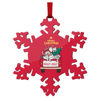 Merry Christmas cats in car, Στολίδι Χριστουγεννιάτικο στολίδι νιφάδα ξύλινο 9cm