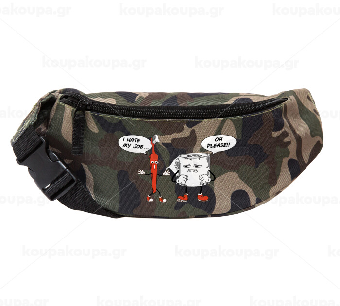 I hate my job, Unisex waist bag (banana) in Jungle camouflage color with 2 pockets
