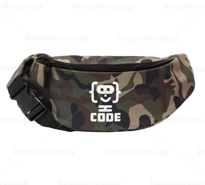 Code Heroes symbol, Unisex waist bag (banana) in Jungle camouflage color with 2 pockets