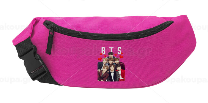 BTS hearts, Unisex waist bag (banana) in PINK color with 2 pockets