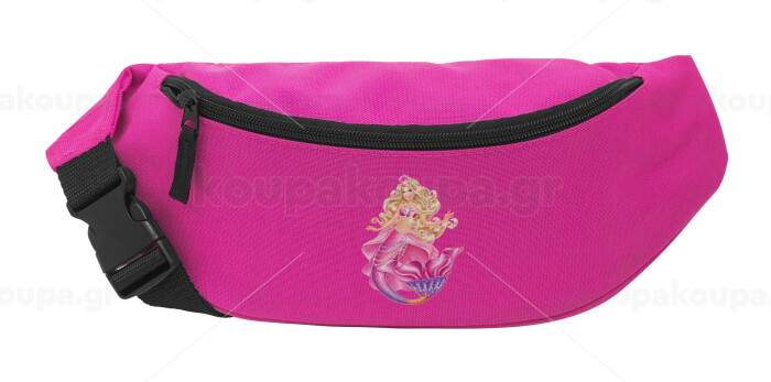 Barbie mermaid blue, Unisex waist bag (banana) in PINK color with 2 pockets