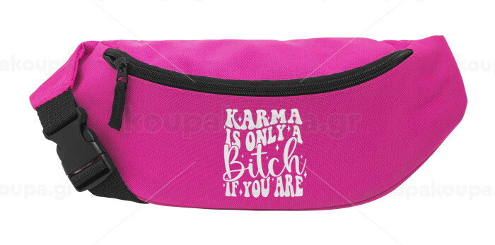 Karma is Only A Bitch if You Are, Unisex waist bag (banana) in PINK color with 2 pockets