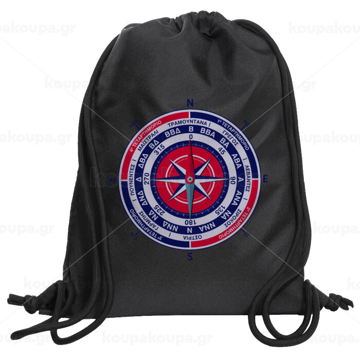 Wind compass, Backpack pouch GYMBAG Black, with pocket (40x48cm) & thick cords