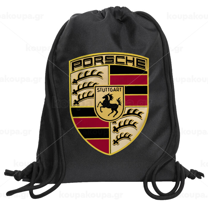 Porsche, Backpack pouch GYMBAG Black, with pocket (40x48cm) & thick cords
