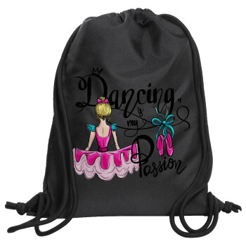 Dancing is my Passion, Backpack pouch GYMBAG Black, with pocket (40x48cm) & thick cords
