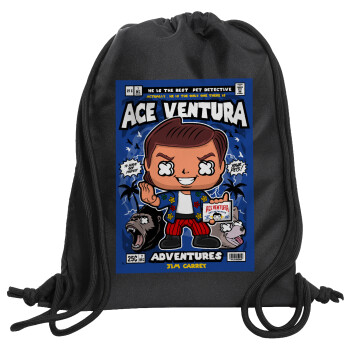 Ace Ventura: Pet Detective, Backpack pouch GYMBAG Black, with pocket (40x48cm) & thick cords