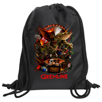 Gremlins, Backpack pouch GYMBAG Black, with pocket (40x48cm) & thick cords