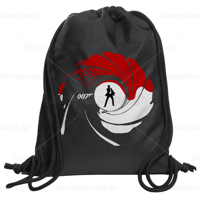 James Bond 007, Backpack pouch GYMBAG Black, with pocket (40x48cm) & thick cords