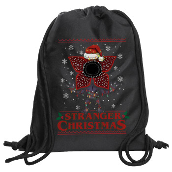 Stranger Things Christmas, Backpack pouch GYMBAG Black, with pocket (40x48cm) & thick cords