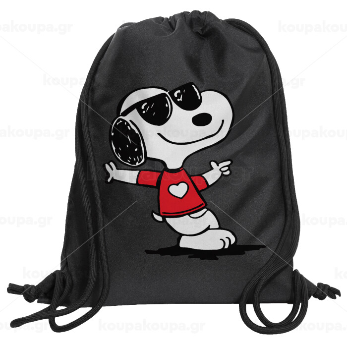 Snoopy καρδούλα, Backpack pouch GYMBAG Black, with pocket (40x48cm) & thick cords