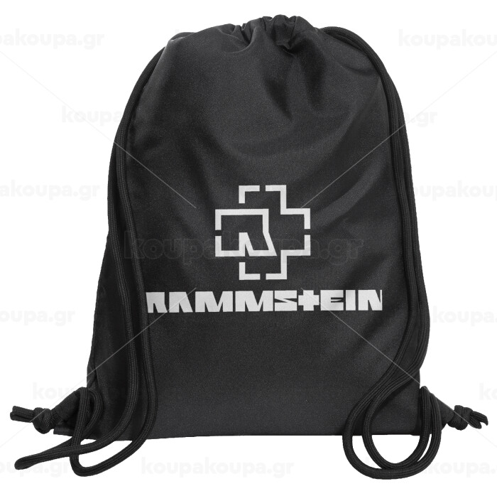Rammstein, Backpack pouch GYMBAG Black, with pocket (40x48cm) & thick cords