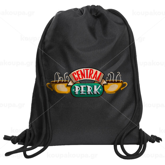 Central perk, Backpack pouch GYMBAG Black, with pocket (40x48cm) & thick cords