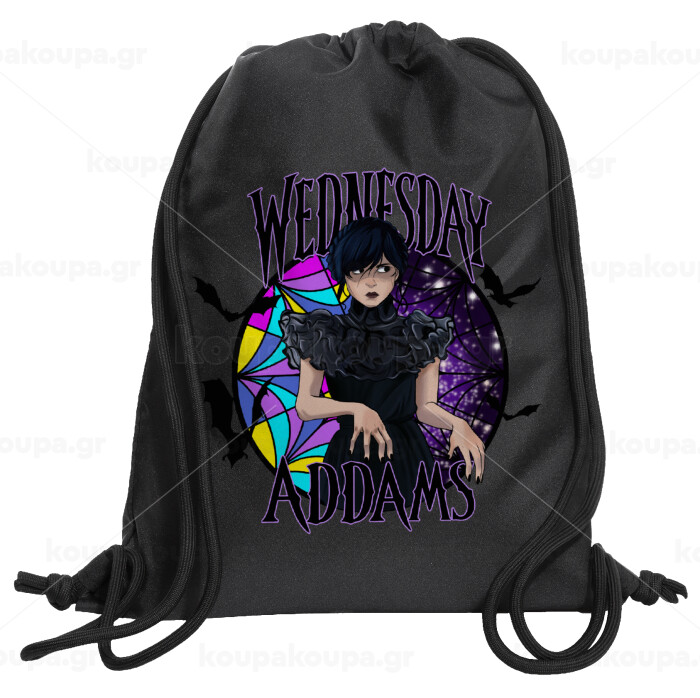 Wednesday Jenna Ortega, Backpack pouch GYMBAG Black, with pocket (40x48cm) & thick cords
