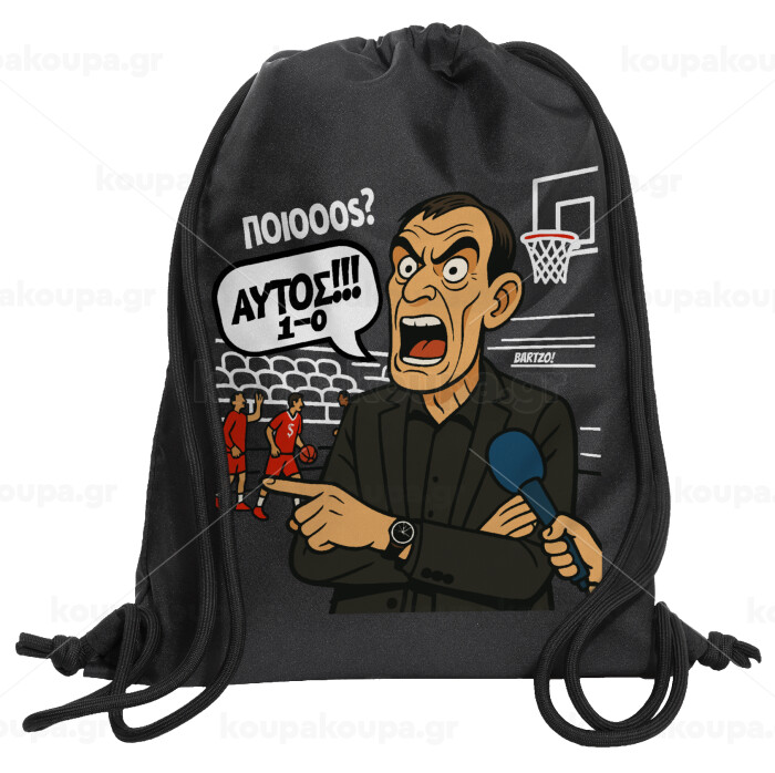 Μπαρτζό, Ποιος? Αυτός!!! 1-0, Backpack pouch GYMBAG Black, with pocket (40x48cm) & thick cords