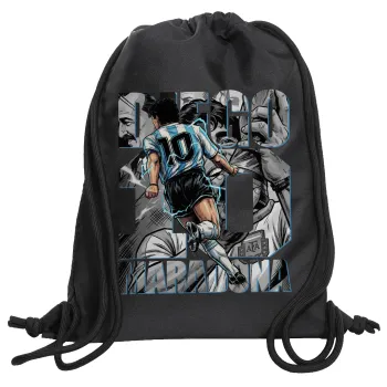 Diego Maradona (Ντιέγκο Μαραντόνα), Backpack pouch GYMBAG Black, with pocket (40x48cm) & thick cords