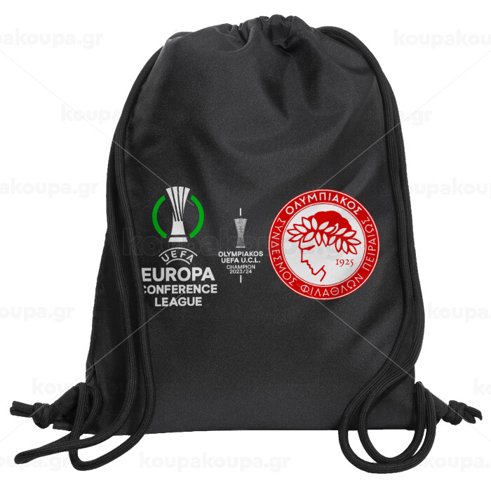 Olympiacos UEFA Europa Conference League Champion 2023/24, Backpack pouch GYMBAG Black, with pocket (40x48cm) & thick cords