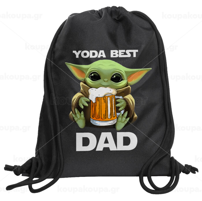 Yoda Best Dad, Backpack pouch GYMBAG Black, with pocket (40x48cm) & thick cords