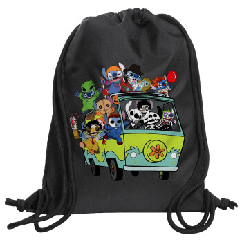 Stitch Halloween scooby car, Backpack pouch GYMBAG Black, with pocket (40x48cm) & thick cords