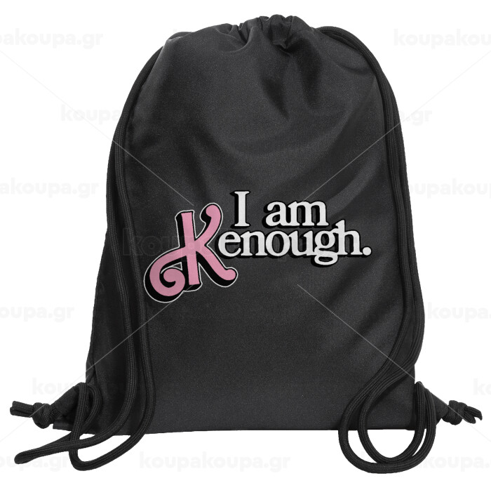 Barbie, i am Kenough, Backpack pouch GYMBAG Black, with pocket (40x48cm) & thick cords