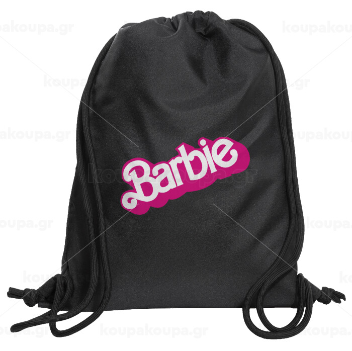 Barbie, Backpack pouch GYMBAG Black, with pocket (40x48cm) & thick cords